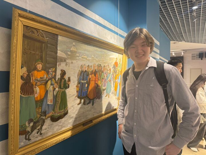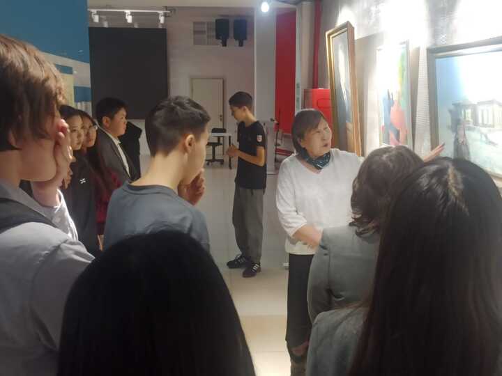 Также вниманию восьмиклассников были представлены художественные полотна, созданные местными художниками. Их творчество позволило юным посетителям ощутить эмоциональную связь с личностью Первого Президента, с историей родины. Особо учащихся впечатлил костюмированный коллективный портрет художника Александра Ходулова, на котором Михаил Ефимович изображен в образе правителя народа саха XVII века.
