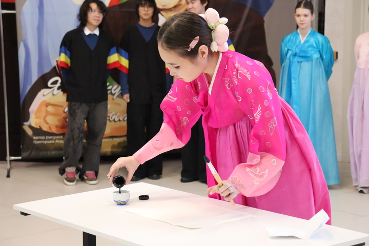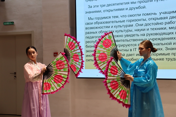 Под руководством педагога дополнительного образования Лидии Никифоровны Моисеевой активисты школьного музея Саха-корейской школы познакомили гостей с богатой историей учебного заведения. Они подготовили яркую презентацию: рассказали об истории своей школы, показали национальные танцы, познакомили с традиционной письменностью хангыль и музыкальными инструментами. Особый интерес вызвали уникальные экспонаты из фонда школьного музея, которые гости привезли с собой. В мероприятии участвовали ученики 6«а» и 10«б» классов, члены детского объединения «Андромеда», а также советник директора по воспитательной работе Лилия Александровна Кычкина.