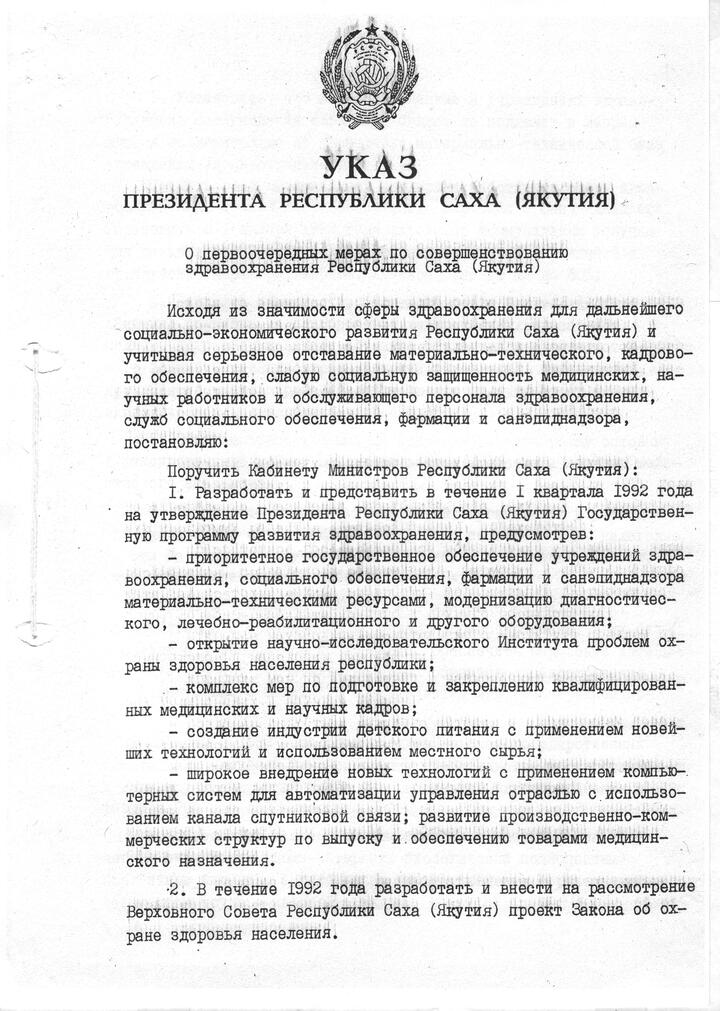 Этот исторический документ заложил основу государственной политики в сфере здравоохранения, ориентированной на сохранение и укрепление здоровья жителей республики. Приоритетом стала система, нацеленная не только на лечение заболеваний, но и на профилактику, формирование здорового образа жизни.