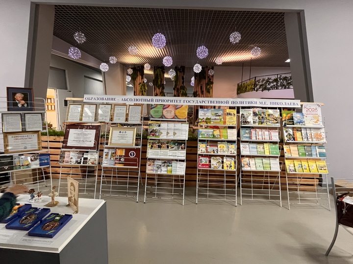 В этот день Николаев-Центр организовал выставку научно-методических изданий из фондов Национальной библиотеки и выставку «Образование – абсолютный приоритет государственной политики М.Е. Николаева».