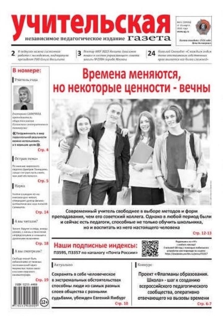 За более чем вековую историю менялись название, формат и периодичность выхода «Учительской газеты». Неизменным оставался диалог учителя с «учительством в целом». Сегодня газета охватывает все темы, касающиеся образования – от дошкольного до высшего, поднимает вопросы, волнующие педагогическое сообщество, и предлагает варианты их решения.