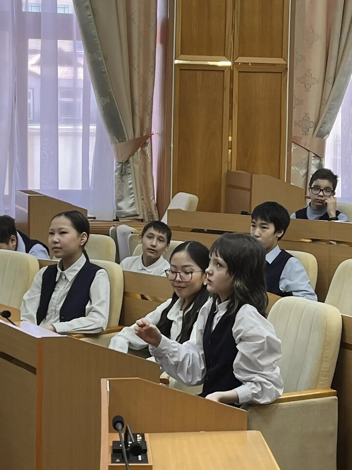 Начальник отдела по работе с обращениями граждан аппарата Государственного Собрания (Ил Тумэн) Марина Иосифовна Голикова рассказала о структуре Ил Тумэна, этапах принятия законов и роли народных депутатов в развитии региона, повышении благосостояния граждан. Учащиеся узнали о ключевых направлениях законодательной деятельности, актуальных законопроектах и механизмах взаимодействия граждан с представителями власти, узнали, с какого возраста можно принимать участие в выборах, в каком возрасте можно стать депутатом. В зале заседания школьники имели воможность посидеть за депутатским рабочим местом и представить себя народным избранником. Шестиклассники школы №24 даже обрисовали свое представление о депутате, о том, какими качествами он должен обладать. Говорили о высокой ответственности, верности сказанному слову, общительности, образованности, умении хорошо говорить и т.д. Десятиклассники школы №30 признались, что теперь по-новому смотрят на работу Парламента.