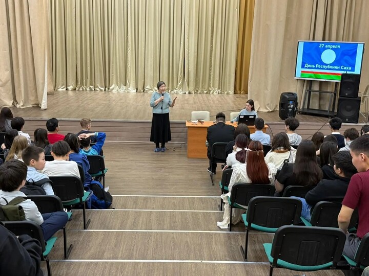 Мероприятие началось с исторического экскурса, который помог школьникам понять контекст эпохи начала XX века. Лектор подробно рассказала, как Якутия прошла путь от отдалённой области до автономной республики: о том, что в 1920‑е годы регион столкнулся с необходимостью политического и экономического самоопределения, ключевую роль в этом процессе сыграли молодые революционеры и интеллектуалы, осознававшиеважность сохранения национальной идентичности в рамках нового советского строя. Благодаря их усилиям 27 апреля 1922 года была образована Якутская АССР.